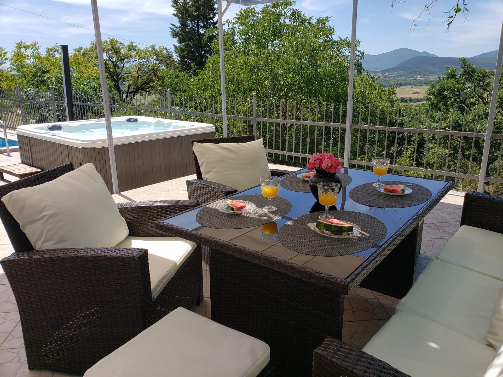 The villa has 2 bedrooms, 2 bathrooms, a flat-screen TV with satellite channels, a dining room, a fully equipped kitchen and a terrace. The comfortable, air-conditioned accommodation also has soundproofing and a fireplace. The facility has an outdoor dining room. Bed linen and towels are available to guests.